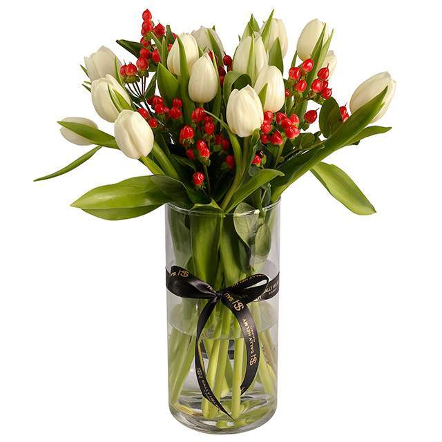 بوكيه توليب أبيض من سالي حلمي لبيع الورد اونلاين والتوصيل دليفري للقاهرة والجيزة