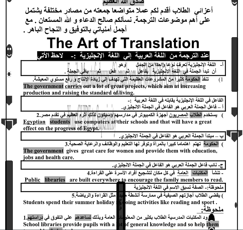 جمل الترجمة المتوقعة فى امتحانات اللغة الانجليزية لصفوف الثانوية العامة 2019