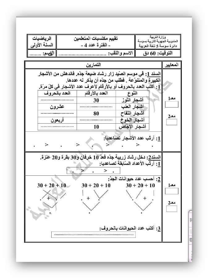 رياضيات تمارين سنة اولى ابتدائي تونس Pdf