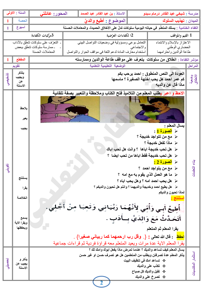 جميع مذكرات التربية الاسلامية للسنة الاولى 1 ابتدائي الجيل الثاني
