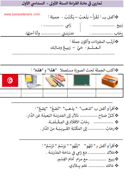 تمارين قراءة سنة اولى ابتدائي تونس