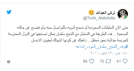 فالصو عفو ملكى عن الشيخ سلمان العودة تعرف على رد نجله على تويتر