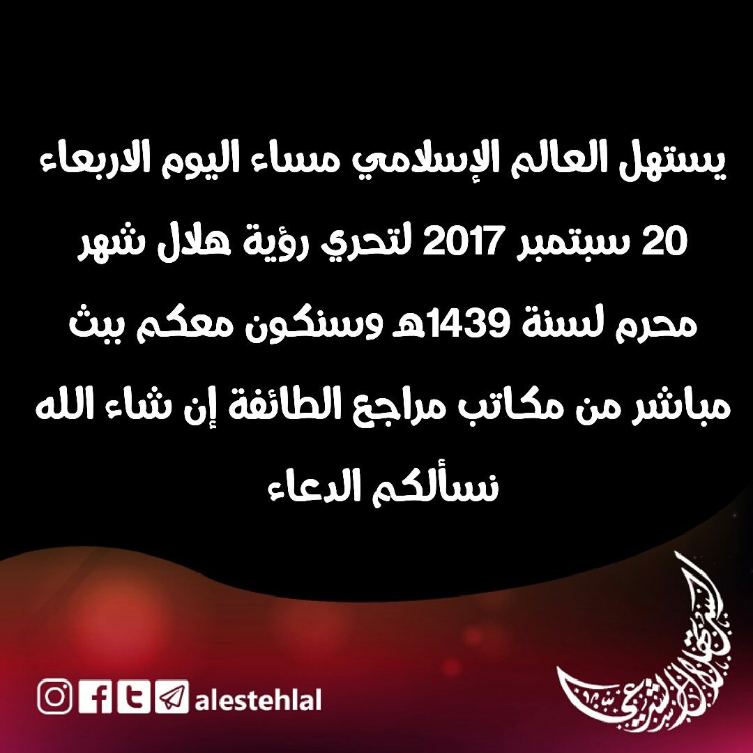 الاستهلال الشرعي On Twitter يستهل العالم الإسلامي مساء اليوم الاربعاء 20 سبتمبر 2017 لتحري رؤية هلال شهر محرم لسنة 1439هـ نسألكم الدعاء الاستهلال الشرعي Alestehlal Https T Co Qnqem8axiu