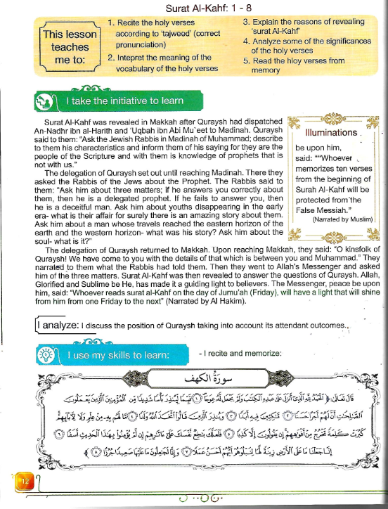 درس سورة الكهف 1 8 لغير الناطقين باللغة العربية للصف في التربية الاسلامية العاشر مع الاجابات مدرستي الاماراتية